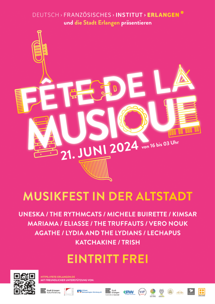Fête de la Musique 2024 Trish Mariama Uneska Lydia and the Lydians The Truffauts Katchakine Kimsar The Rhythmcats Eliasse Michèle Buirette Agathe Lachapus Véro Nouk Pädagogische Arbeitsblätter 2024